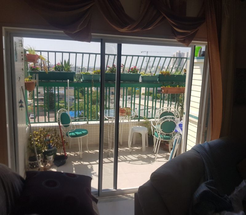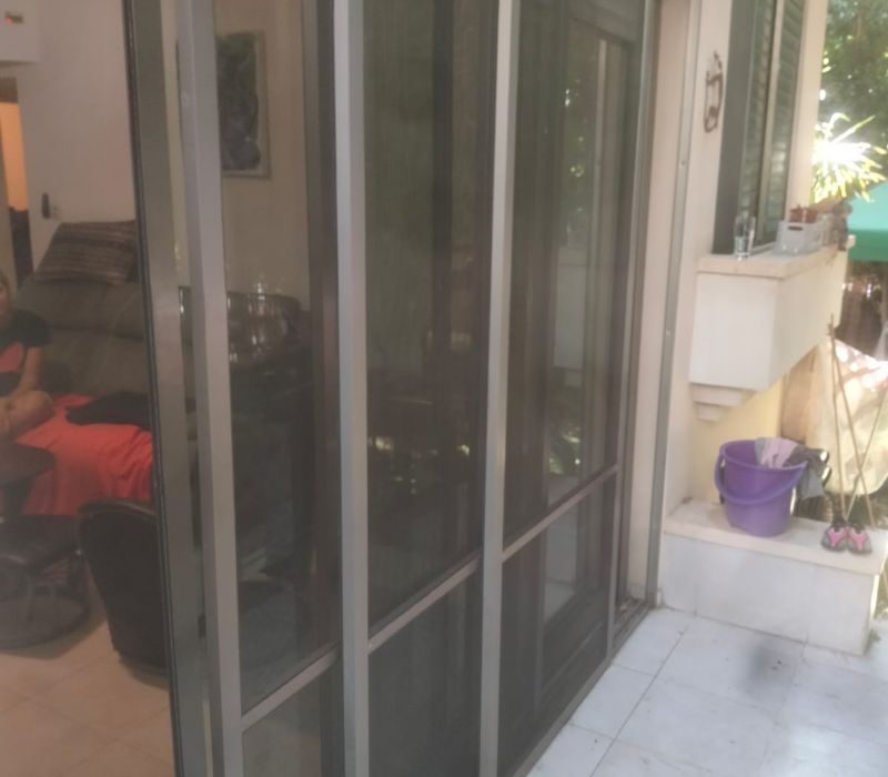 ויטרויטרינה הזזה זכוכית שקופה בודידית עם תריס ונציאני בתוך הזכוכית ינה 3 כנפיים הזזה לסלון