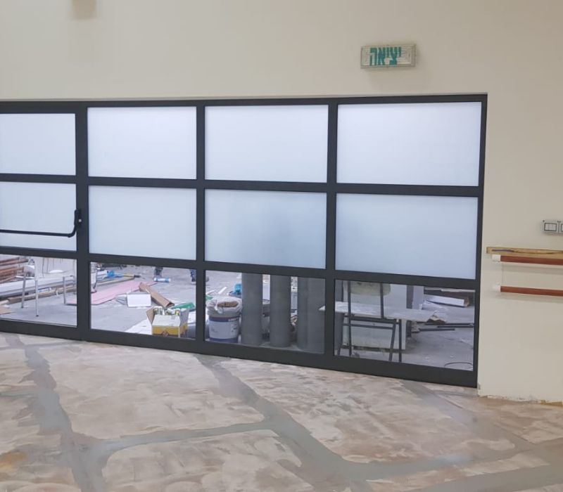 ויטרינה קבועה זכוכית חלבית ושקופה